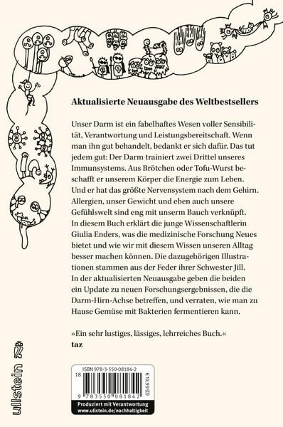 Unser Darm ist ein fabelhaftes Wesen voller Sensibilität, Verantwortung und Leistungsbereitschaft. Wenn man ihn gut behandelt, bedankt er sich dafür. Das tut jedem gut: Der Darm trainiert zwei Drittel unseres Immunsystems. Aus Brötchen oder Tofu-Wurst beschafft er unserem Körper die Energie zum Leben. Und er hat das größte Nervensystem nach dem Gehirn. Allergien, unser Gewicht und eben auch unsere Gefühlswelt sind eng mit unserm Bauch verknüpft. In diesem Buch erklärt die junge Wissenschaftlerin Giulia Enders, was die medizinische Forschung Neues bietet und wie wir mit diesem Wissen unseren Alltag besser machen können. Die dazu gehörigen Illustrationen stammen aus der Feder ihrer Schwester Jill. Die aktualisierte Neuauflage wird um ein Kapitel ergänzt: Die Schwestern Enders geben hier ein Update zu neuen Forschungsergebnissen und der Welt der Mikroben.