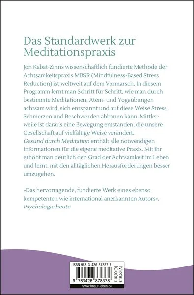 In diesem Meditations-Ratgeber finden Sie fundierte Anleitungen und Anti-Stress-Übungen für Anfänger und Fortgeschrittene - egal ob bei chronischen Schmerzen oder als Einstieg in die Meditation. Jon Kabat-Zinn verbindet auf einzigartige Weise östliche Weisheit mit westlicher Wissenschaft und ebnet den Weg zu einem achtsamen und erfüllten Leben. Diese Taschenbuchausgabe des Klassikers ist eine vom Autor autorisierte gekürzte Fassung. Die ungekürzte Langfassung ist unter demselben Titel als Hardcover erhältlich.