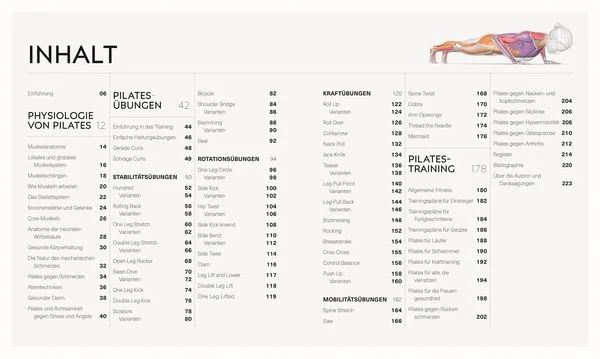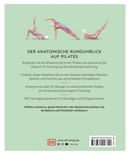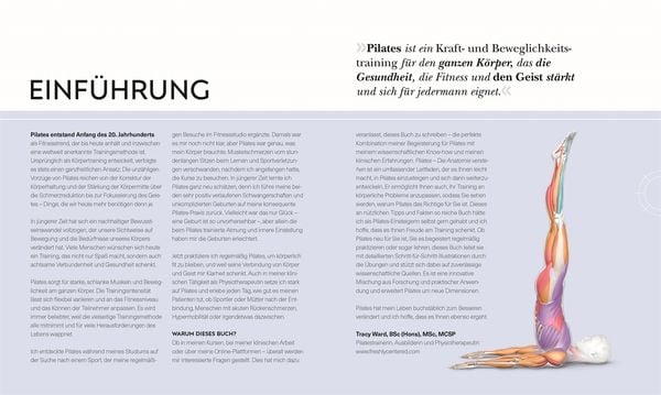 Pilates - Die Kraft aus der Körpermitte!  Als Ganzkörpertraining mit den Schwerpunkten Körpermitte, Balance und Flexibilität ist Pilates absolut für jede und jeden geeignet. Dieses Buch zeigt die Anatomie hinter den Pilates-Übungen in detaillierten Grafiken. Es erklärt auf verständliche Weise die positiven Effekte der Bewegungsabläufe und gibt wissenschaftliche Einsichten, damit das Training auch von Einsteiger*innen richtig ausgeführt werden kann. So werden Rücken, Beckenboden und Rumpf effektiv und sicher trainiert.