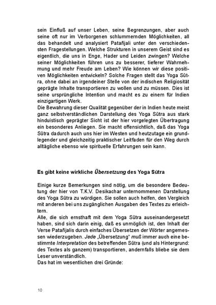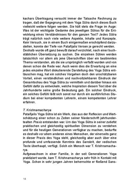 T.K.V. Desikachar versteht es, mit seiner als Einführung konzipierten Übertragung und Erläuterung in einer für uns alle verständlichen Weise einen tiefen Einblick in die praktische, geistige und spirituelle Dimension des Yoga Sûtra zu vermitteln.
