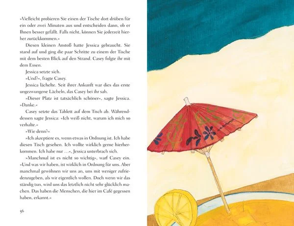 Die Bestseller-Fortsetzung Damals war er zufällig auf das Café am Rande der Welt gestoßen. Und obwohl er sich an einem völlig anderen Ort befindet, Tausende Kilometer entfernt, sieht er es plötzlich wieder. In dem Café begegnet er Jessica, die unglücklich mit ihrem Leben ist. Eingebunden in ein stressiges Arbeitsleben, tut sie das, was andere von ihr erwarten, hat dabei aber ihre eigenen Ziele und Wünsche aus den Augen verloren. John wird zu ihrem Mentor und hilft ihr, sich auf den Sinn ihres Lebens zu besinnen. In den Gesprächen von Jessica und John findet der Leser Antworten auf die Frage, wie man dem täglichen Hamsterrad entkommt und den Sinn des eigenen Lebens wieder entdeckt.